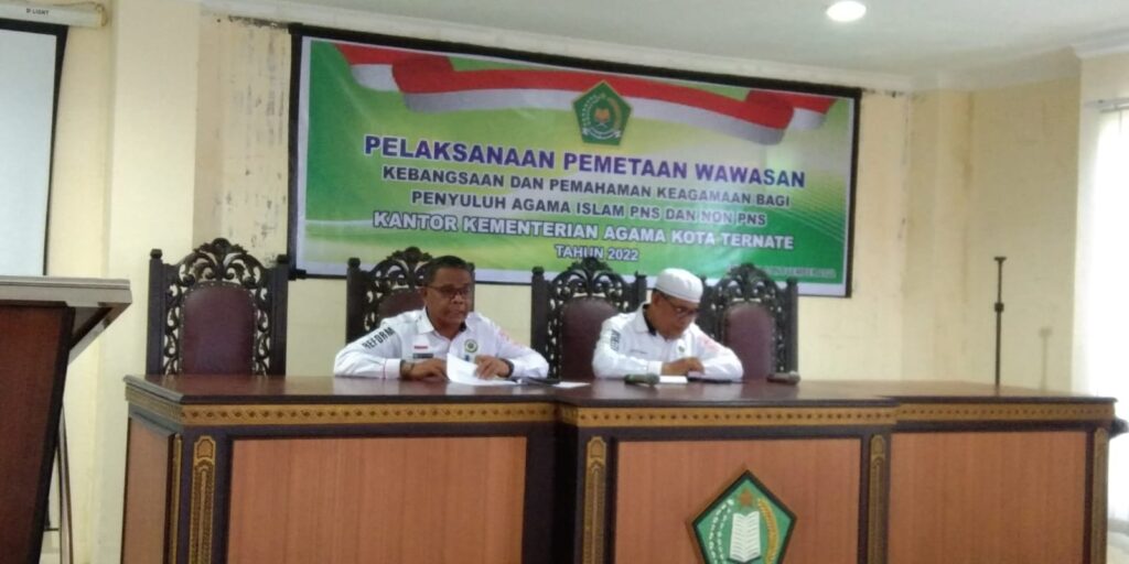 Ternate,- Seksi Bimbingan Masyarakat Isalam Kantor Kementerian Agama Kota Ternate menyelenggarakan kegiatan Pemetaan Wawasan Kebangsaan dan Pemahaman Keagamaan Bagi Penyuluh Agama Islam PNS dan Non PNS pada Selasa (01/11/2022) bertempat di Aula Nurhasanah Kantor Kementerian Agama Kota Ternate.