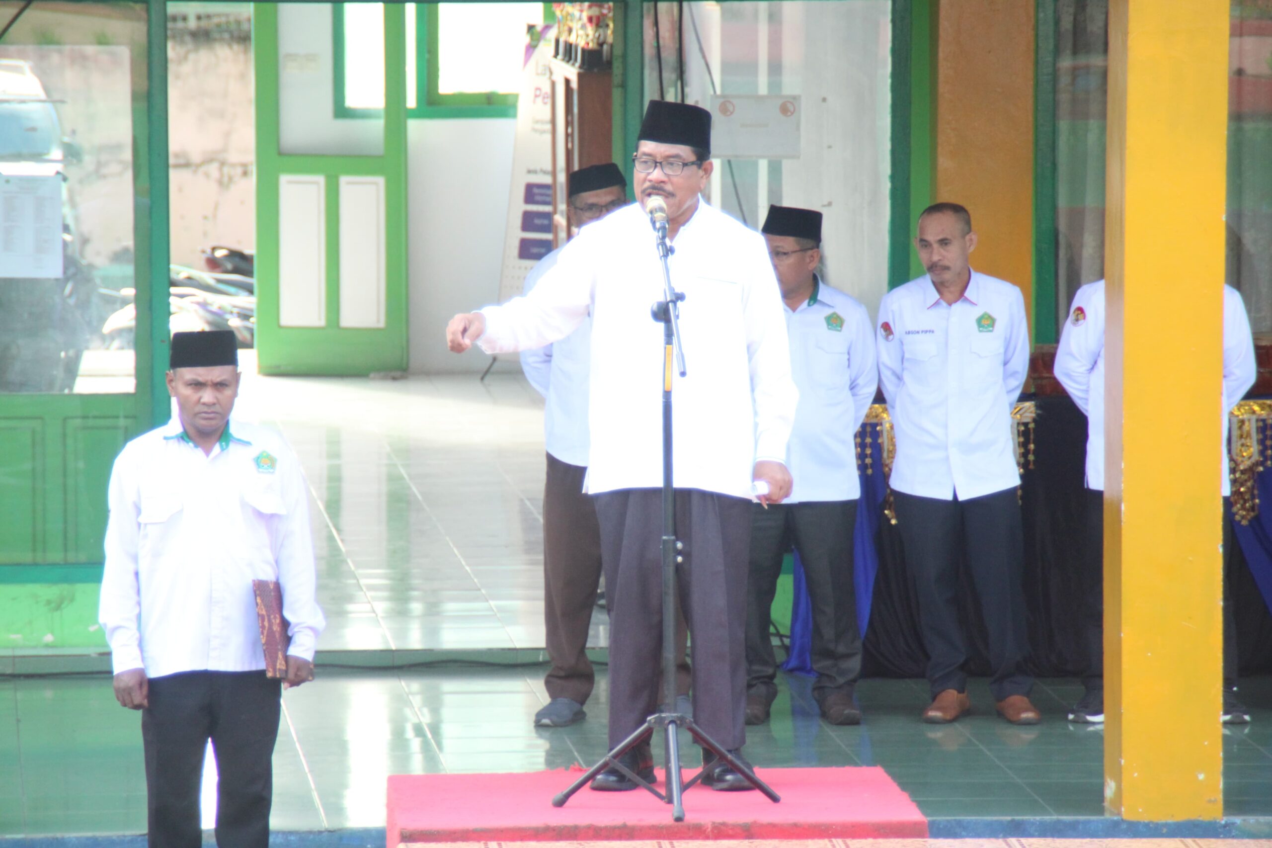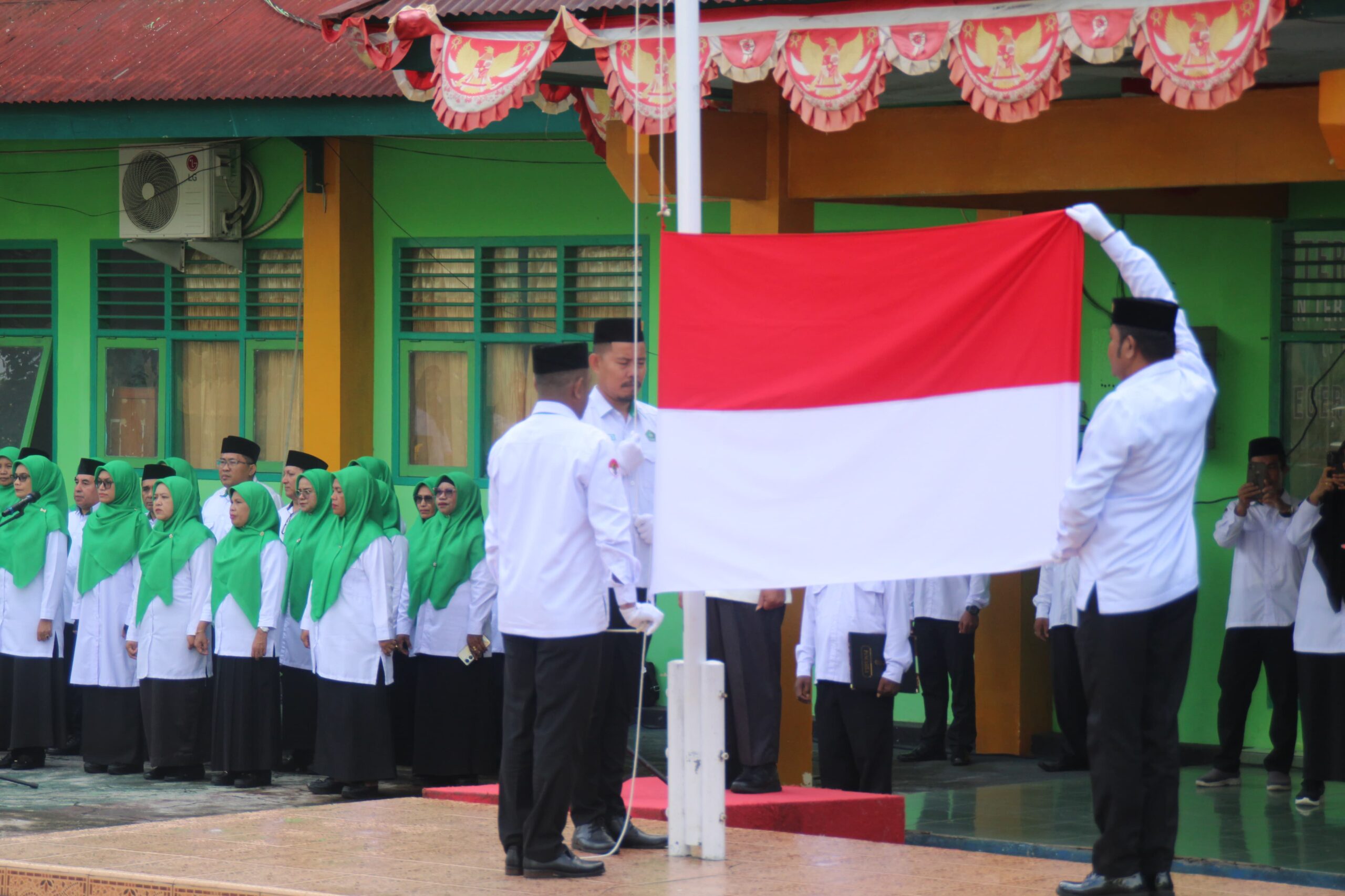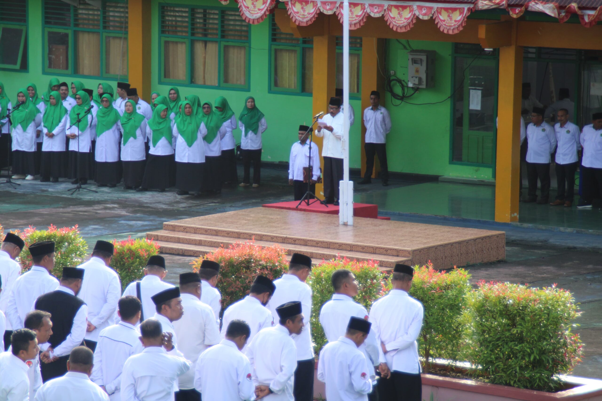 Kepala Kantor Kementerian Agama Kota Ternate, H. Salmin Abd Kadir, bertindak sebagai Inspektur Upacara sekaligus membacakan naskah pidato Menteri Komunikasi dan Digital RI, Meutya Viada Hafid. Upacara dihadiri oleh jajaran pimpinan Kemenag Kota Ternate; Kasubbag TU, Para Kepala Seksi dan Penyelenggara, Kepala KUA Kecamatan, Ketua dan Anggota Pokjawas, Kepala Madrasah serta seluruh ASN dan Non ASN Kemenag Kota Ternate.