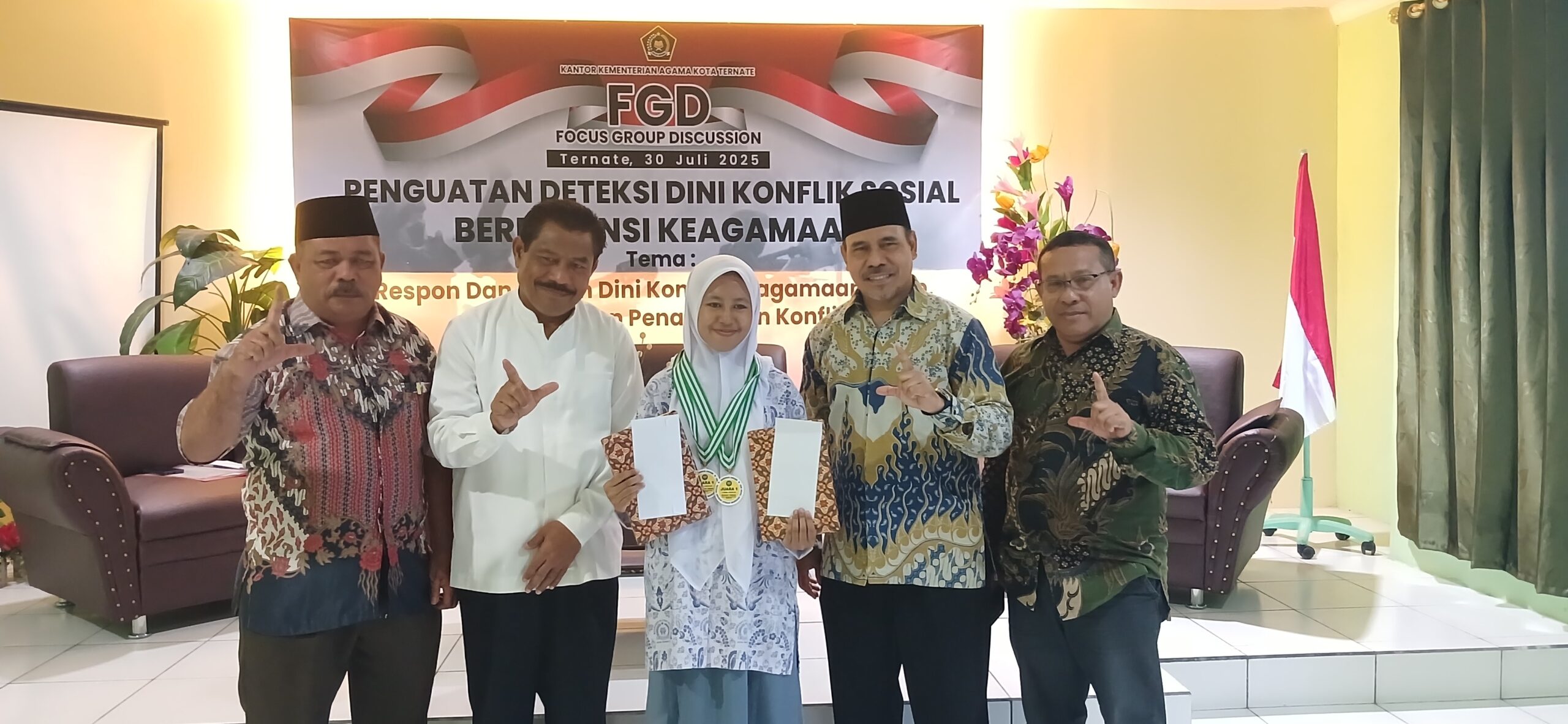 Ternate,- Kantor Kementerian Agama Kota Ternate menggelar acara evaluasi kegiatan Galatama di lingkungan madrasah sekaligus memberikan apresiasi kepada siswa-siswi berprestasi yang berhasil meraih juara pada Festival Galatama Tingkat Provinsi, Rabu (30/7/2025) di Aula Nurhasanah.