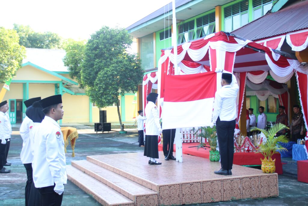 Rangkaian upacara berlangsung dengan pengibaran Sang Saka Merah Putih, pembacaan teks Proklamasi, pancasila, UUD 1945, mengheningkan cipta, serta doa bersama untuk para pahlawan yang telah gugur memperjuangkan kemerdekaan.