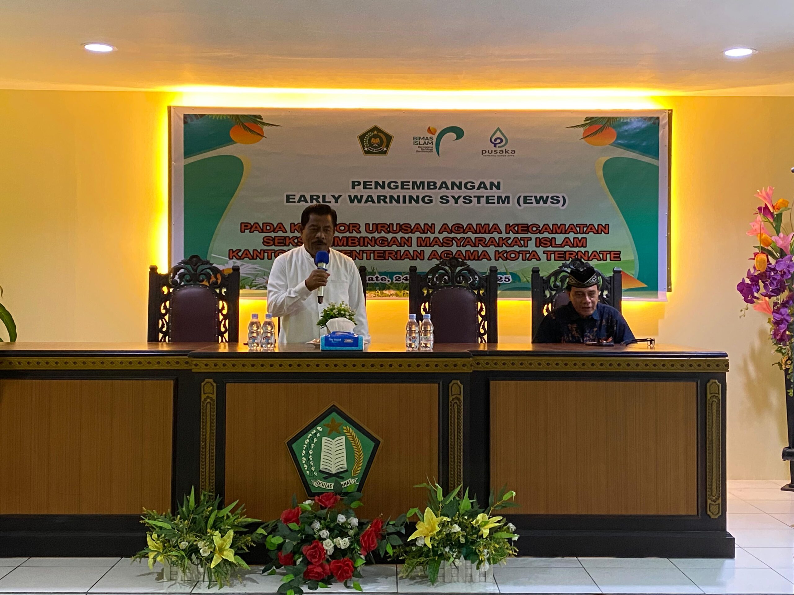 Ternate,- Kantor Kementerian Agama Kota Ternate melalui Seksi Bimbingan Masyarakat Islam menyelenggarakan kegiatan Percepatan Sistem Peringatan Dini (Early Warning System/EWS) Konflik Sosial Berdimensi Keagamaan sesuai dengan Edaran Sekjen Kemenag Nomor 22 Tahun 2024. Kegiatan ini berlangsung pada Rabu (24/09/2025) di Aula Nurhasanah Kantor Kemenag Kota Ternate.