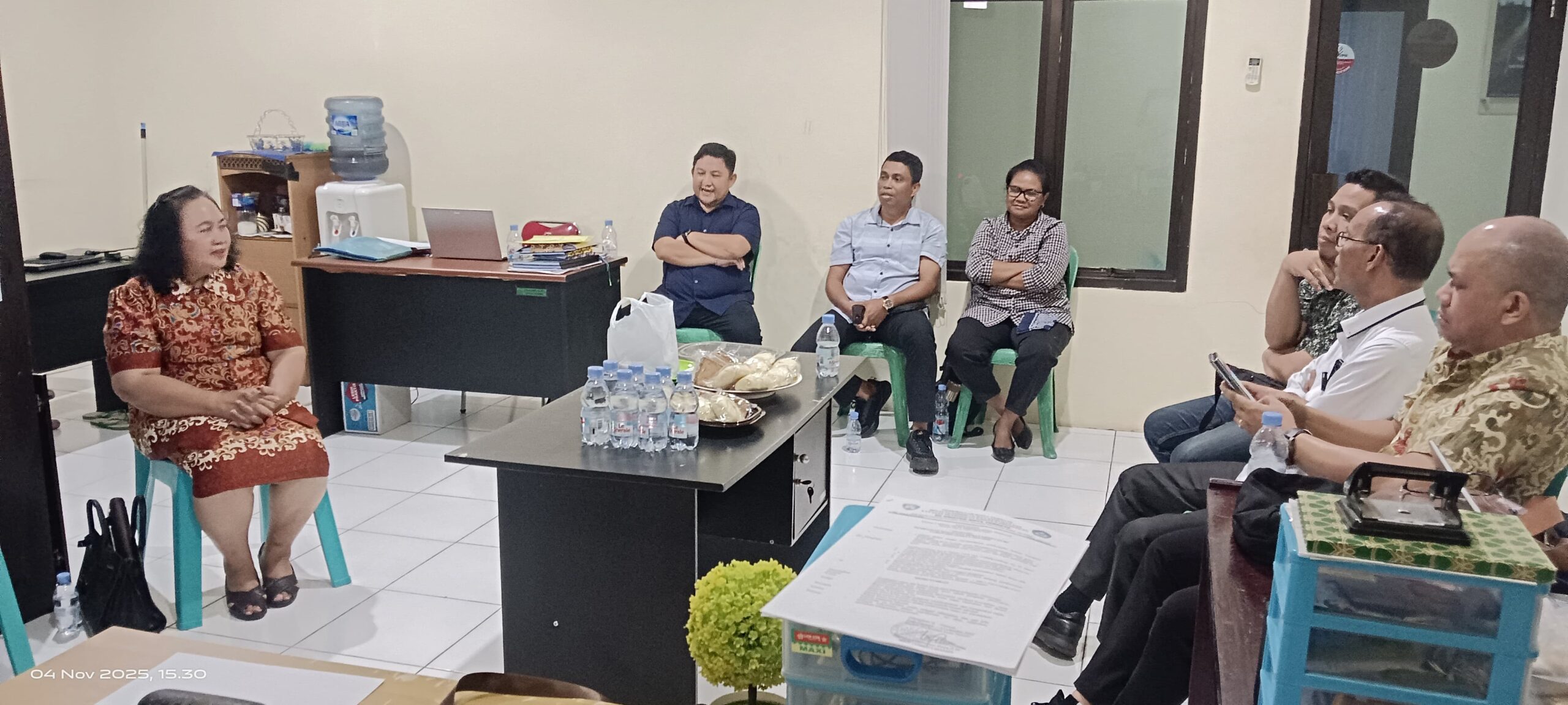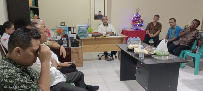 Ternate,- Kantor Kementerian Agama Kota Ternate melalui Penyelenggara Kristen menggelar Rapat Koordinasi dengan seluruh pimpinan jemaat gereja se-Kota Ternate pada Selasa (4/11/2025), Pertemuan yang berlangsung di ruang kerja Penyelenggara Kristen ini dipimpin langsung oleh Penyelenggara Kristen, Abson Pippa.
