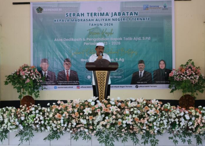 Ternate,- Kepala Kantor Kementerian Agama Kota Ternate, H. Salmin Abd. Kadir, menghadiri acara serah terima jabatan (sertijab) Kepala Madrasah Aliyah Negeri (MAN) 1 Kota Ternate, Senin (27/04/2026), bertempat di Aula MAN 1 Kota Ternate.